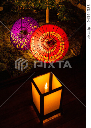 京都東山的秋天,松林寺,秋葉燈火通明,日本雨傘