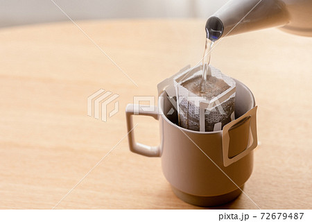 在滴水袋裡倒熱水的咖啡