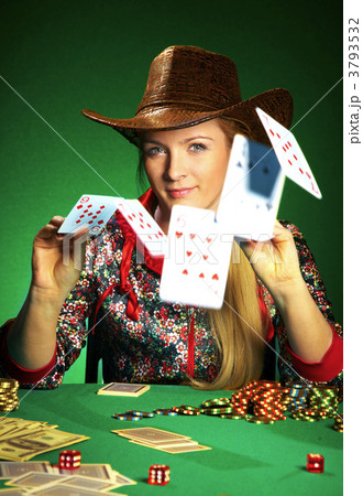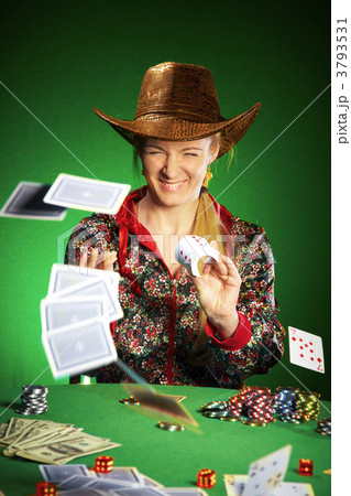 Woman in casino playing cards