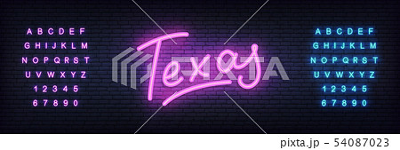 Texas neon lettering. Glowing light Texas template