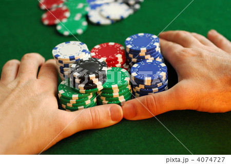 Stack of casino chips against green background