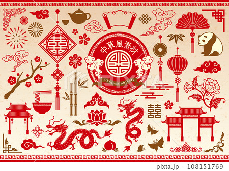 2025 年中國蛇年和農曆新年裝飾品和圖標插圖集