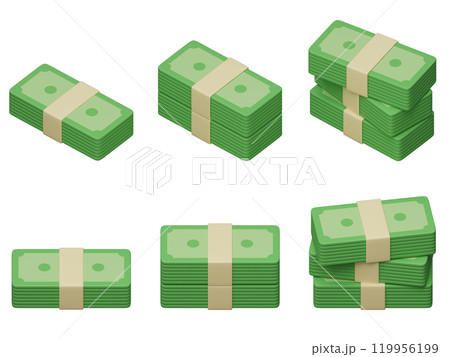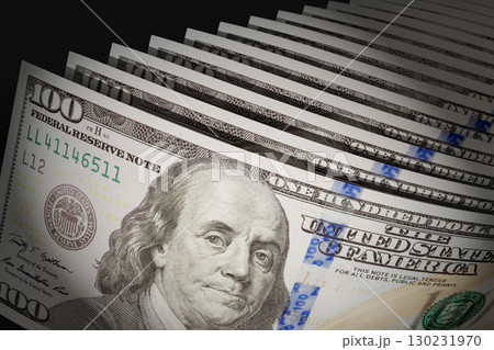 Abstract Set of U.S. 100 Dollar Bills Isolated on a White Background.