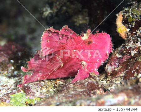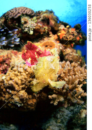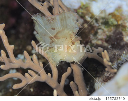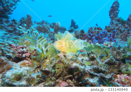 Awesome Leaf scorpionfish, Taenianotus triacanthus, or paperfish, shot at a tropical coral reef