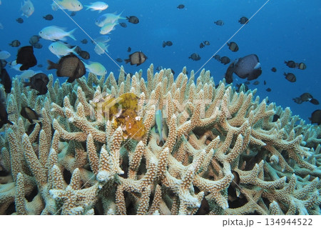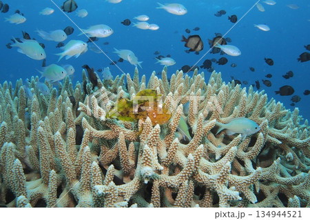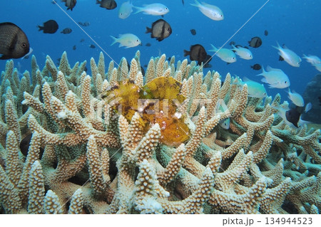 水下照片:珊瑚、裸蠍子魚和雀鯛