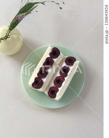 Japanese fruit sando with fluffy white bread, fresh cream, and vibrant slices of seasonal fruits like strawberries, kiwis, and mangoes. A refreshing, colorful treat perfect for any occasion.