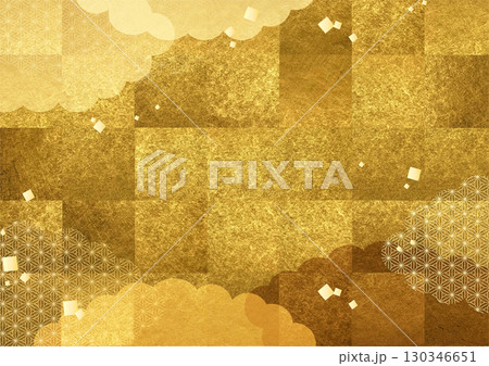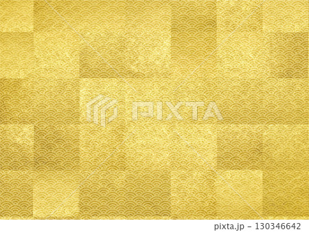 日式背景教材。金色和紙上印有日式傳統圖案的紋理。新年、年末禮物、賀年卡材料