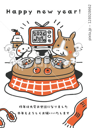 2026新年賀卡模板①-2,以馬和蛇吃雜煮為主題