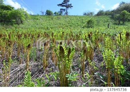 在霧峰高原的屋島原濕地,人們看到了一叢美麗的日本紫萁,它剛開始生長。