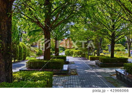 陽光明媚的夏日里的水杉樹蔭