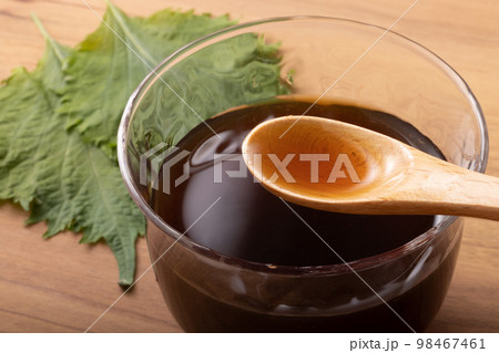 竹葉包裹的魚餅配紫蘇葉,置於盤中 [白色背景,摳圖]