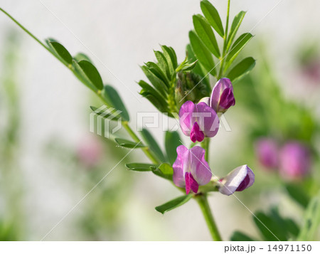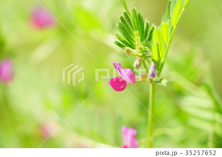 新綠色的田野裡綻放著美麗的野花豌豆花