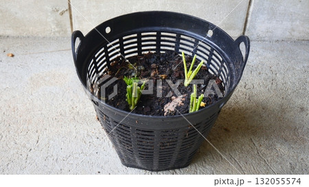 Stem cuttings propagated in nursery soil; rows of thick-stemmed plants sprouting green leaves for easy grow, garden or landscape use.