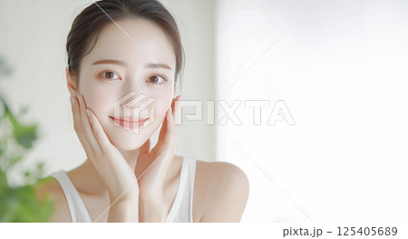 一位年輕女子用手摀住臉的肖像。美容保養品