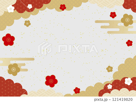 日本紙新年賀卡背景材料5 日式雲朵梅花舞動