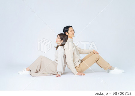穿著牛仔布的男女情侶照