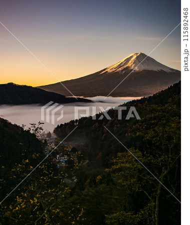 (山梨縣)從禦坂山脈的大嶽山上看到的日出和富士山