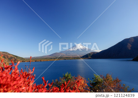 (山梨縣)冬天的山中湖、天鵝和富士山
