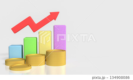 Financial Profit Growth Concept with Stacked Coins Bar Chart and Rising Arrow 3d render.