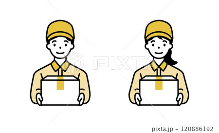 帶行李的送貨員前視圖男性和女性線寬度可變