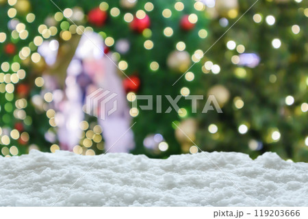 Abstract blur decorated Christmas tree with baubles New Year holidays background