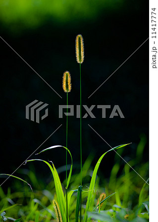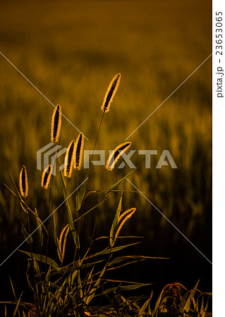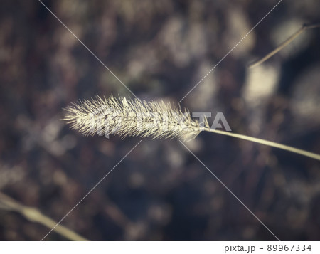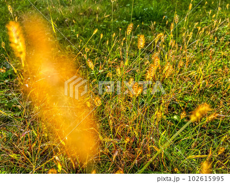 路邊生長的狐尾草在早晨的陽光下閃閃發光