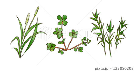 綠色狐尾、馬齒莧和燈盞花蘇門答臘的插圖