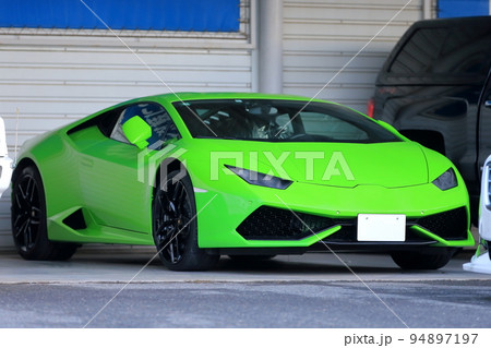 國內生產緊湊開放體育跳躍的綠色汽車例證