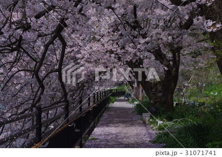 櫻井,福井,阿蘇瓦河沿岸的一排櫻花樹