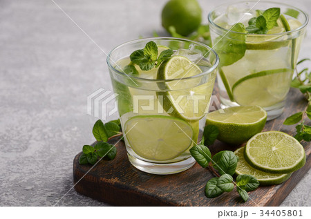 refreshing cocktail mojito with cane sugar, lime and mint isolated