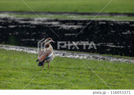 Mallard or wild duck Anas platyrhynchos female in a green grass. Beautiful waterfowl. Close up