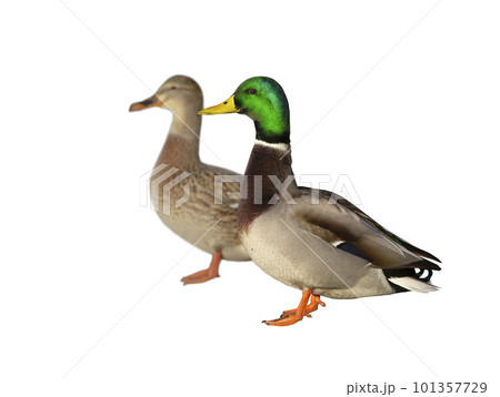 male and female Mallard (anas platyrhynchos) isolated on white background