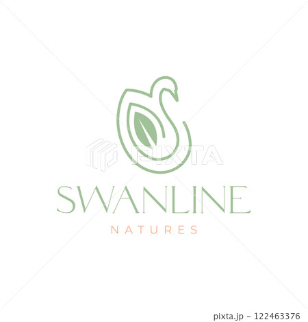 swan goose bird swimming leaves minimalist line style simple feminine logo design vector icon illustration