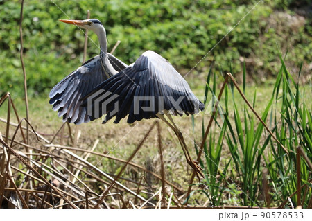 Grey heron (Ardea cinerea) with spreaded wings
