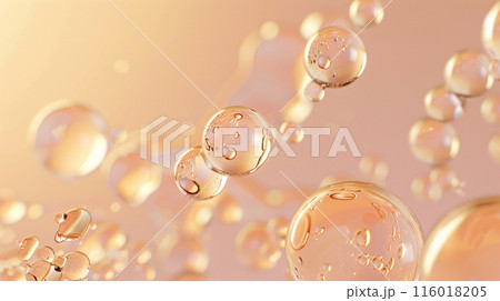 透明黃色氣泡背景讓人聯想到維生素 C 或美容精華
