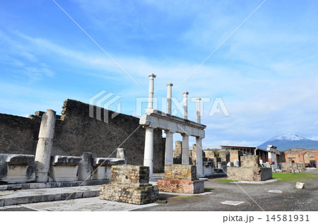 Pompeii, Italy. Temple Of Jupiter Or Capitolium Or Temple Of Capitoline Triad On Background Of Mount Vesuvius