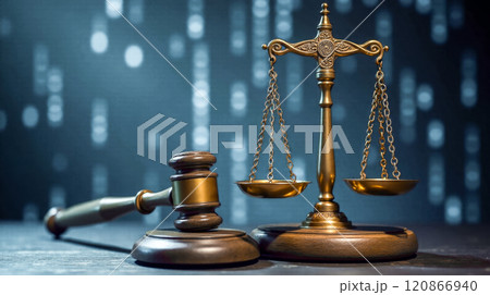 Legal Services in IT, Cyber Law Balance, Digital Justice Scale, Internet Regulation Concept, Data Protection Law, Intellectual Property Rights