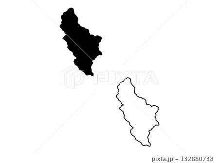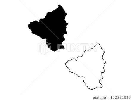 This image features a distinct blocky black silhouette and its corresponding outline for geographical representation
