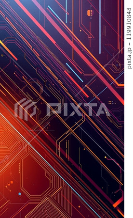 Abstract background technology, square geometric shape with digital data lines over it vector illustration, brochure, poster