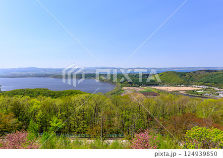 從北海道網走市天都山展望台(鄂霍次克流冰館展望台)看到的網走湖和能取湖【5月】