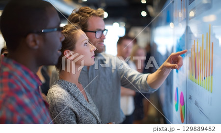 Top view of manager write whiteboard and share marketing strategy. Directorate.