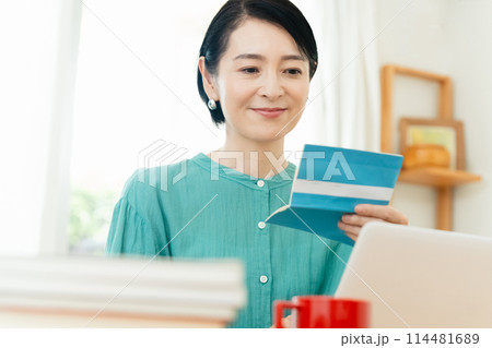 中年婦女檢查她的銀行存摺