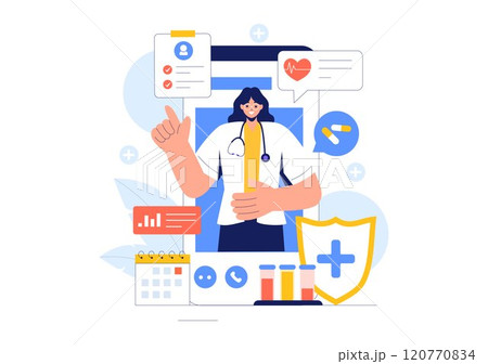 Remote Health Monitoring Vector Illustration featuring the Use of Digital Technology to Track Medical and Health Data in a Fat Style Background