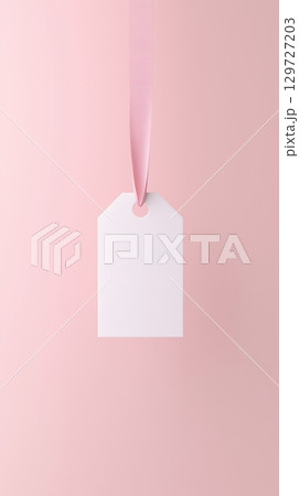 Rectangular white blank paper tag label price tag with hanging rope isolated pink