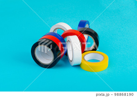 Electrical Tape Isolated, Plastic Duct Tape Rolls, Colored Adhesive Tapes on White Background
