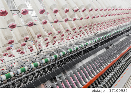 Close-up of vibrant textile threads in a row with selective focus and soft bokeh