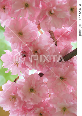 櫻桃背景材料 - 盛開的雙櫻花盛開的花朵 - 粉紅色的日本紙背側面位置