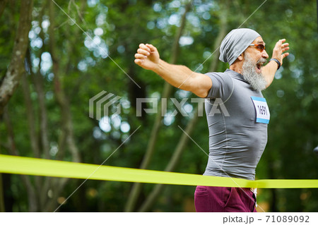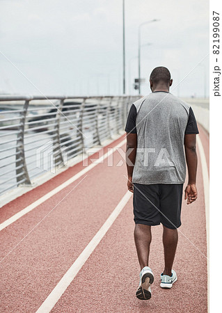 Horizontal medium portrait of modern African American man wearing sportswear in sunlight