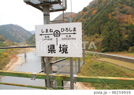 停運的 JR 三光線(現為江之川鐵道,不定期運行觀光電車)的縣界標誌