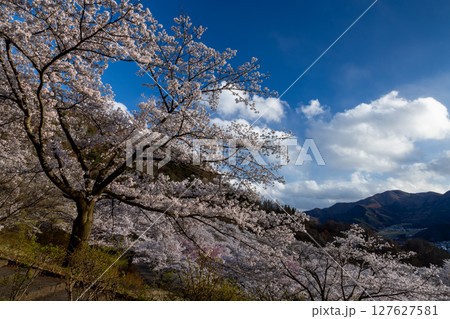 長野縣千曲市戶倉宿櫻花園的山坡上,盛開著染井吉野櫻